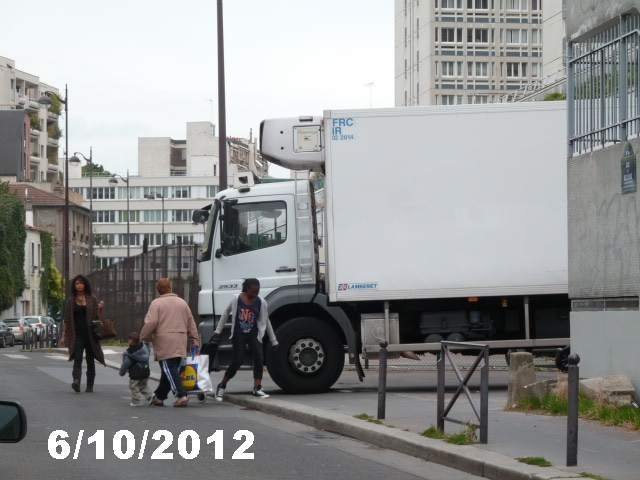Sorte de crèche et retour des courses chez LIDL le tottoir est occupé par un poids lourd.